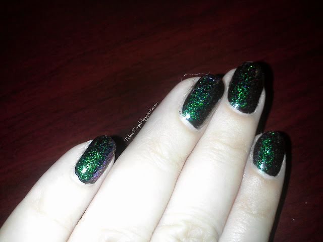 I believe this manicure was 2 coats of Ozotic, which is where that heavy density of sparkle comes from but I would not swear to it. It's been a little while since I wore this.